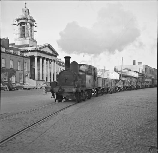 | Keywords: steam train steamtrain trains cork goods engine church esso cobbles cobblestones september 1962 1960s james p. o'dea jamespodea wagons choochoo handbell cross city railway crosscityrailway gs&wr gswr great southern & western railway greatsouthernwesternrailway ship street shipstreet lower glanmire road lowerglanmireroad unity garage unitygarage clyde cutting clydecutting west cork line westcorkline cork city railway co. corkcityrailwayco national library of ireland nationallibraryofireland o'dea photographic collection odeaphotographiccollection blackandwhite monochrome outdoor vehicle train locomotive black and white Steam train making its way through Cork city. Great help has come in from Corkonians (and others) on exact location, and other information for this one! See the comments below... Date: 12 September 1962 NLI Ref.: ODEA33/1 Steam train making its way through Cork city. Great help has come in from Corkonians (and others) on exact location, and other information for this one! See the comments below... Date: 12 September 1962 NLI Ref.: ODEA33/1 |