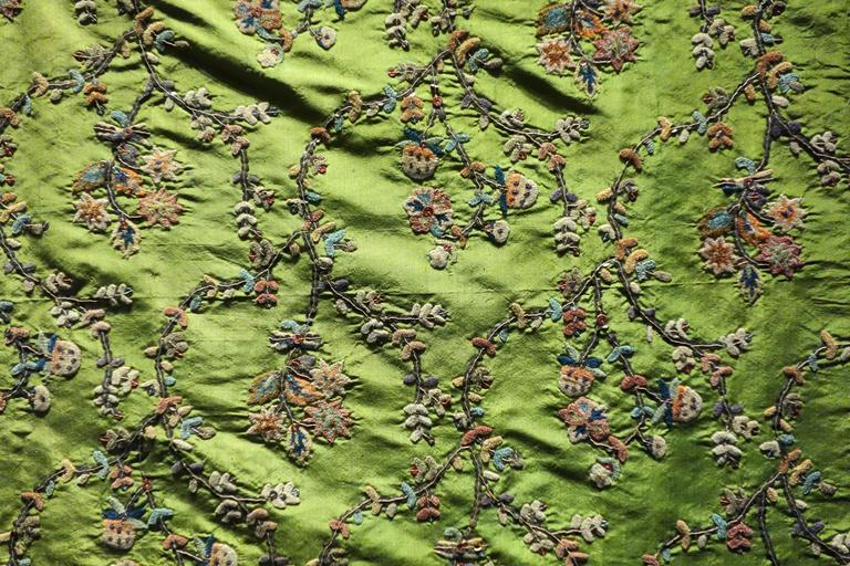 MAKE A MEME View Large Image Sequined embroidery (pulak-duzi), Persia, 1800s with partial remnants from late 1700s to early 1800s, brocade fabric with sequins, silk thread, chenille yarn on silk - Museum für Völkerkunde Dresden - DSC08164.JPG en Exhibit in the Museum ...