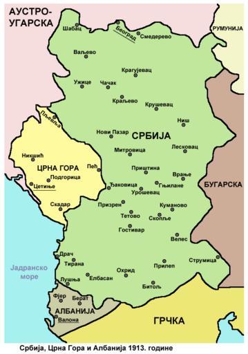 | Keywords: Serbia montenegro albania1913 02.png English Serbia Montenegro and Albania in 1913 after Ottoman defeat in the First Balkan War - Serbian language version <br>Serbian С бија Ц на Го а и Албанија 1913 године након османског по аза у П вом балканском ату - ве зија на с пском језику own 2012 PANONIAN Cc-zero References http //www ilpalo com/mappe-cartine-storiche/balcani-1800-1914/images/1913-balcani-paesi-belligeranti-balkan_belligerants_1914_jpg jpg http //farm3 staticflickr com/2131/1918728439_646a703931_z jpg zz 1 http //cdn dipity com/uploads/events/06adbc148d8e23d5b7d7c7948ed684b9_1M png http //www giovanniarmillotta it/albania/mappe/1913-04_balcani JPG http //vatopaidi files wordpress com/2011/01/balkans-map-1913 jpg http //www gutenberg org/files/36192/36192-h/images/img-060 jpg Dimitrije Bogdanović Knjiga o Kosovu Beograd 2006 Petrit Imami Srbi i Albanci kroz vekove Beograd 2000 Vladimir Ćorović Ilustrovana istorija Srba knjiga šesta Beograd 2006 Sima M Ćirković Srbi među evropskim narodima Beograd 2004 Milojko Brusin Rasprava o Kosovu Novi Sad 2004 Peter Bartl Albanci Beograd 2001 Noel Malcolm Kosovo - A Short History London 2002 Maps of Serbia during the Balkan Wars Maps of the history of Montenegro in modern times Maps of the history of Albania in modern times Maps of the history of the modern Balkans Maps of the Kingdom of Serbia Kingdom of Montenegro Maps of the First Balkan War Maps in Serbian |