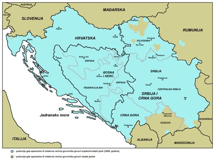 Keywords: Serbo croatian language2005-sh.png en Area where the Serbo-Croatian language or Serbo-Croatian diasystem is spoken by the majority or plurality of speakers as of 2005 - data by municipalities Note many modern linguists still consider Serbo-Croatian to be a single language no matter that the majority of its speakers declare in census that they speak its official standard forms Serbian Croatian Bosnian and Montenegrin sh Područje na kome apsolutna ili relativna većina stanovnika govori srpskohrvatski jezik 2005 godina - podaci po opštinama Napomena mnogi današnji lingvisti smatraju da je srpsko-hrvatski i dalje jedan jezik bez obzira što većina njegovih govornika na popisu iskazuje da govori njegove zvanične standardne forme srpski hrvatski bosanski i crnogorski own PANONIAN 2013 Cc-zero References Published references Anatole V Lyovin An Introduction to the Languages of the World Oxford University Press New York 1997 George L Campbell Concise Compendium of the World's Languages London - New York 1999 Ranko Bugarski Jezici Novi Sad 1996 Popis stanovništva domaćinstava i stanova u 2002 - Stanovništvo - knjiga 3 - Veroispovest maternji jezik i nacionalna ili etnička pripadnost prema starosti i polu podaci po opštinama Republika Srbija - Republički zavod za statistiku Beograd maj 2003 Popis stanovništva domaćinstava i stanova u 2003 - Stanovništvo - knjiga 3 - vjeroispovest maternji jezik i nacionalna ili etnička pripadnost prema starosti i polu podaci po opštinama Republika Crna Gora - Zavod za statistiku Podgorica novembar 2004 Internet references http //www monstat cg yu/Popis/Popis03 zip - Crna Gora - Popis stanovništva domaćinstava i stanova u 2003 - Stanovništvo - knjiga 3 - vjeroispovest maternji jezik i nacionalna ili etnička pripadnost prema starosti i polu podaci po opštinama http //www dzs hr/Hrv/censuses/Census2001/Popis/H01_02_03/H01_02_03 html http //www dzs hr/ - Hrvatska - 13 STANOVNIŠTVO PREMA MATERINSKOM JEZIKU PO GRADOVIMA/OPĆINAMA POPIS 2001 http //www edrc ro/ - 2002 census in Romania http //media-2 web britannica com/eb-media/98/1998-004-80962EB7 gif http //www laser-dd com/page php 34 3Cbr 20/ 3E - District Brčko population http //commons wikimedia org/wiki/File Kosovo_ethnic_2005 png http //www michaeltotten com/images/Kosovo 20Ethnic 20Map JPG http //www britannica com/blogs/wp-content/uploads/2011/02/0000123909-kosovo011-0501 gif http //theeuropeans net/blog/images/Kosovo_Map gif http //www vesti-online com/data/images/2011-08-24/173718_mapa_iff jpg ver 1353141185 http //commons wikimedia org/wiki/File DemoBIH2006a png http //commons wikimedia org/wiki/File Etnicka_karta_BiH_iz_2005 gif http //img834 imageshack us/img834/5324/bih2006i2008izbori jpg http //www crucified-kosovo eu/attachments/Image/Maps/48_a_1994_etnicka_BiH png http //www euroheritage net/bosniamap PNG http //t2 gstatic com/images q tbn ANd9GcS2FkHib9v07XJKZWIjQVpx4t1mbdGqlgUxk4nHrKR2rzEztDqr Linguistic maps of Serbia Linguistic maps of Vojvodina Linguistic maps of Kosovo Linguistic maps of Montenegro Linguistic maps of Bosnia and Herzegovina Linguistic maps of Croatia Linguistic maps of Yugoslavia Linguistic maps of the Serbo-Croatian language Linguistic maps of the Serbian language Linguistic maps of the Croatian language Linguistic maps of the Bosnian language Linguistic maps of the Montenegrin language Maps in Serbian Maps in Serbo-Croatian |
