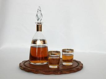 MAKE A MEME View Large Image service bottle alcohol glasses plateau wood