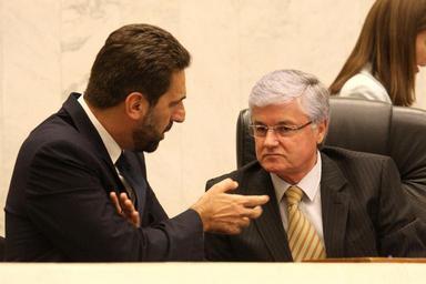 Keywords: Deputados Ênio Verri e Valdir Rossoni durante sessão. Foto: Nani Gois / Assembleia Legislativa do Paraná
