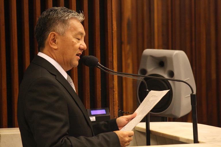 Keywords: Teruo Kato ocupa a tribuna. Foto: Nani Gois / Assembleia Legislativa do Paraná