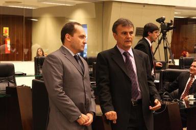 Keywords: people indoor suit Deputados Hermas Brandão Júnior (PSB) e Toninho (PT). Foto: Nani Gois / Assembleia Legislativa do Paraná Deputados Hermas Brandão Júnior (PSB) e Toninho (PT). Foto: Nani Gois / Assembleia Legislativa do Paraná