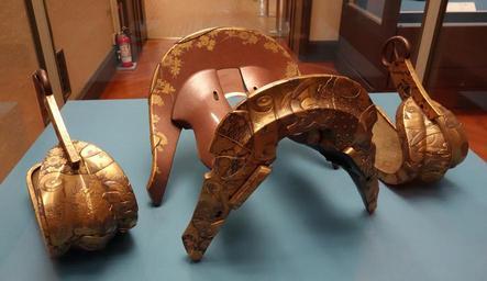 Keywords: Set of Saddle and Stirrups, Edo period, 19th century, scroll design in maki-e lacquer - Tokyo National Museum - DSC05942.JPG en Exhibit in the Tokyo National Museum Tokyo Japan This artwork is old enough so that it is in the public domain 2013-09-03 00 14 05 own Daderot cc-zero Japanese armour at the Tokyo National Museum Uploaded with UploadWizard Stirrups of Japan Maki-e |