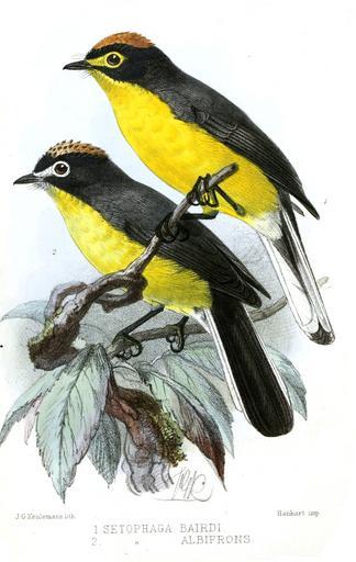 Keywords: Setophaga2Keulemans.jpg <br /> « Setophaga bairdi » Myioborus melanocephalus ruficoronatus Subspecies of Spectacled Whitestart « Setophaga albifrons » Myioborus albifrons White-fronted Whitestart <br /> « Setophaga bairdi » Myioborus melanocephalus ruficoronatus Sous-espèce de Paruline à lunettes « Setophaga albifrons » Myioborus albifrons Paruline à front blanc http //archive org/stream/ibis24brit page/n355/mode/2up The Ibis ser 4 vol 2 creator John Gerrard Keulemans 1878 Image extracted Setophaga bairdi Keulemans jpg Setophaga albifrons Keulemans jpg PD-old-100 Myioborus melanocephalus Myioborus albifrons Ibis 1878 |
