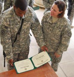 Keywords: Seven Gimlets volunteer to stay Army DVIDS82529.jpg en Spc Derric Brown native of Victorville Calif and member of the Forward Area Support Team assigned to Company A 225th Brigade Support Battalion 2nd Stryker Brigade Combat Team Warrior 25th Infantry Division Multi-National Division “ Baghdad signs his re-enlistment certificate at the Al Faw Palace March 28 as his re-enlistment officer 1st Lt Michelle Garcia a native of Omaha Neb who serves as the forward area support coordinating officer for 1st Battalion 21st Infantry regiment Gimlets 2nd Stryker Cavalry Regiment MND-B looks on U S Army photo/SPC Dustin Weidman 2008-03-28 https //www dvidshub net/image/82529 82529 2008-04-01 15 30 VICTORY BASE COMPLEX IQ PD-USGov Victory Base Complex 21st Infantry Regiment United States 25th Infantry Division United States Al-Faw Palace Images from DoD uploaded by Fæ |