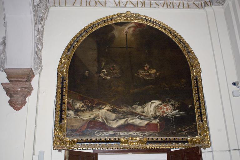 Keywords: Sevilla-Hospital de la Santa Caridad-Finis gloriae mundi-Juan de Valdés Leal-20110915.jpg Esta obra junto con la que lleva por título In ictu oculi le fue encargada a Juan de Valdés Leal para ser colocada en el sotocoro del Hospital de la Caridad de Sevilla y al igual que en las pinturas del género Vanitas aluden a la banalidad de la vida terrena y a la universalidad de la muerte aunque también quedan unidas con el fin primordial de la Hermandad de la Caridad de Sevilla que era el de enterrar a los ajusticiados e indigentes de la ciudad al igual que otras hermandades similares existentes en España en esa época between 1670 1672 Oil on canvas size cm 220 216 Institution Hospital de la Caridad Sevilla http //www artehistoria com/v2/obras/10662 htmhttps //es wikipedia org/wiki/Juan_de_Vald C3 A9s_Leal Pinturas_para_la_Hermandad_de_la_Caridad object history credit line accession number Own PD-old-100 Cc-by-sa-3 0 Daniel VILLAFRUELA RI-51-0007326 Finis Gloriae Mundi Hospital de la Caridad de Sevilla september 2011 in Andalusia |