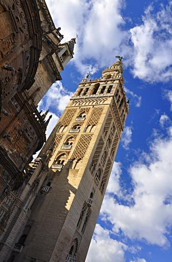 Keywords: seville cathedral spain monuments architecture andalusia giralda tower church catholics tourism art temple catholicism artistic islamic religion minaret muslim art almohads bell tower old building veleta spanish-muslim al - andalus