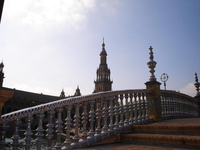 Keywords: seville parque españa andalusia bridge pond park anibal gonzalez maria luisa park spain baroque balustrada ceramic