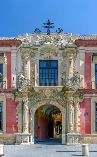 Keywords: seville spain city cities urban archbishop's palace catholic building landmark historic architecture sky clouds outside ornate decorative