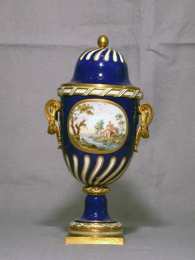 | Keywords: Sèvres Porcelain Manufactory - One of a Pair of Vases (Vase à feuilles de laurier) - Walters 48625 - Back.jpg Walters Art Museum artwork Creator Manufacture nationale de Sèvres This vase and its pair Walters 48 626 are in bleu nouveau and have handles in the form of rings of laurel leaves The vases are decorated with panels showing amorous shepherds and shepherdesses Pithou the elder painted these scenes after Francois Boucher's paintings La Musique pastorale and Les Amusements de la campagne 1743 1772 soft-paste porcelain cm 32 6 accession number 48 625 2104 Collection of Sir Anthony Rothschild according to Hodgkins remains to be verified E M Hodgkins Collection Paris no 50 date and mode of acquisition unknown A Seligmann Rey and Co New York Henry Walters city Baltimore Walters Art Museum Henry Walters Acquired by Henry Walters 1928 Visible marks Factory mark Intertwined Lls; Date Letter T 1772 place of origin Sèvres France Walters Art Museum license Sèvres porcelain in the Walters Art Museum Media contributed by the Walters Art Museum needs category review Charles-Nicolas Dodin |