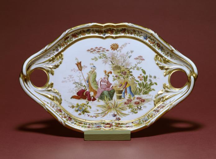 | Keywords: Sèvres Porcelain Manufactory - Tray - Walters 48730 - Top.jpg The fanciful Chinese scene was painted by Chauveaux the Younger Chinoiserie or pseudo-Oriental compositions had been popularized by François Boucher 1776 hard-paste porcelain with gilt and enamels cm 38 1 24 accession number 48 730 11907 Henry Walters Baltimore date and mode of acquisition unknown Walters Art Museum Henry Walters Acquired by Henry Walters Double L's crown Y 1776 IN Chavaux jeune place of origin Sèvres France Walters Art Museum license Sèvres porcelain in the Walters Art Museum Media contributed by the Walters Art Museum needs category review |