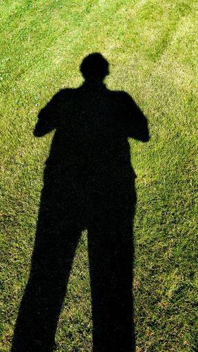 Keywords: shadows people man standing dark tall green background sunny day bright sunlight photographer male outdoors black
