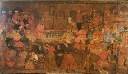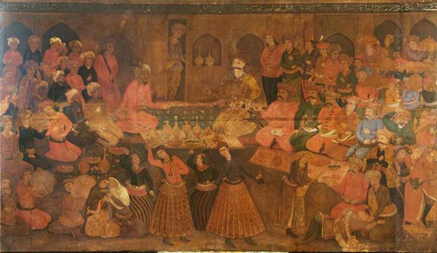View Original: | Shah_Tahmasp_Entertains_Abdul_Muhammed_Khan_of_the_Uzbeks,_oil_on_canvas,_iran,_1814-1815.jpg (689x400) | |||
