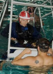 Keywords: SHALLOW WATER EGRESS DVIDS1078737.jpg en HOUSTON Jul 20 2006 -- Petty Officer 3rd Class Jason Taylor an aviation maintenance technician at Coast Guard Air Station Houston recieves a final briefing before conducting shallow water egress training The egress training is designed to give aircrew members the skills needed to survive and aircraft crash in the water USCG photo by PA2 Adam Eggers 2006-07-20 Petty Officer 2nd Class Adam Eggers https //www dvidshub net/image/1078737 1078737 2013-12-11 18 13 HOUSTON TX US PD-USGov Coast Guard Air Station Houston Images from DoD uploaded by Fæ |
