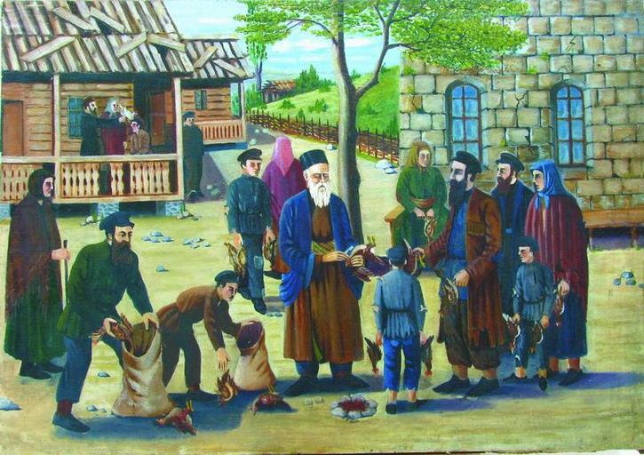 Keywords: Shalom Koboshvili. Slaughtering poultry according to religious rules. Oil on canvas. 70.5×101 cm. 1940.jpg Artwork Creator Shalom Koboshvili he החכ שוחט תרנגו ות כפרות ka ფრი ველის დაკვლა რელიგიური წესით 1940 oil canvas cm 70 5 101 object history exhibition history credit line accession number http //www amuse-all net/gallery/gallery php gallery 5 id 117 p 24 www amuse-all net Paintings by Shalom Koboshvili Oil on canvas Chokha in art Georgian Jews with chokha 1940 paintings Georgian Jews in art Oil paintings Slaughtering in art Kapparot Shechita PD-old-auto 1941 |