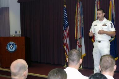 Keywords: Shane T. McCoy addresses a graduating class.jpg DEFENSE INFORMATION SCHOOL Fort George G Meade Md “ Navy Petty Officer 1st Class Shane McCoy photojournalist for All Hands magazine delivers the graduation speech for the Basic Still Photography course 080-06 graduation here June 9 2006 During the 13-week course Basic Still Photography students are trained to create professional visual information products using the latest techniques and state-of-the art equipment in photography Department of Defense Photo by Navy Journalist Seaman William C Culp http //www dinfos osd mil/dinfosweb/photos asp newsId 128 photoId 1 2006-06-09 William C Culp PD-USGov-Military-Navy Military graduations Shane T McCoy |