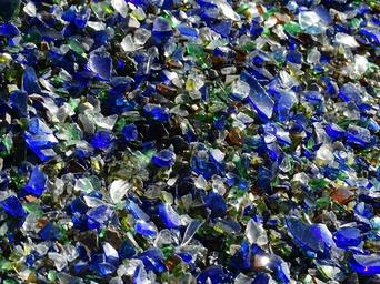 Keywords: shard glass broken glass garden green blue white color shiny glassy decorative scherbenmeer stained glass