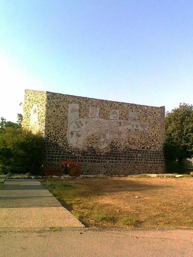 Keywords: Sharrona.jpg en Sharona בניין ציבור מעוטר בפסיפס במושב שרונה own Almog 9/8/2010 Sharona
