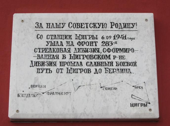 Keywords: Shchigry Train Station plate 1.jpg en Shchigry Train Station WWII Memorial Plate ru Π Π΅ΠΌΠΎΡ ΠΈΠ°Π»ΡŒΠ½Π°Ρ Ρ‚Π°Π±Π»ΠΈΡ‡ΠΊΠ° Π½Π° станции Π©ΠΈΠ³Ρ Ρ‹ посвящСнная 283-ΠΉ ΡΡ‚Ρ Π΅Π»ΠΊΠΎΠ²ΠΎΠΉ Π΄ΠΈΠ²ΠΈΠ·ΠΈΠΈ own Transcend rus 2009-05-09 51 52 51 0 N 36 54 25 0 E Plaques in Shchigry Plaques referencing 1941 Shchigry Train Station
