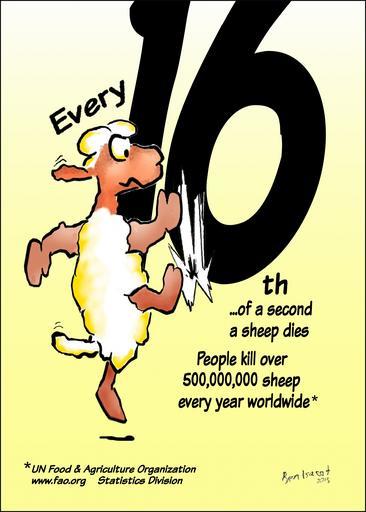 | Keywords: sheep slaughter animals food mutton lamb animal rights animalrights rights cartoon text How many sheep do people kill? Over half a billion every year. Statistics from UN Food and Agricultural Organization: faostat3.fao.org/download/Q/QA/E How many sheep do people kill? Over half a billion every year. Statistics from UN Food and Agricultural Organization: faostat3.fao.org/download/Q/QA/E |
