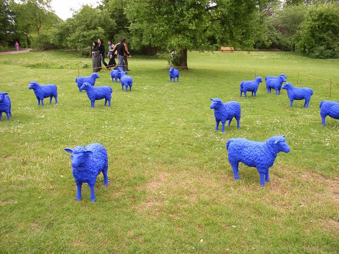 Keywords: sheep blue blue sheep artificial field lamb pasture statues