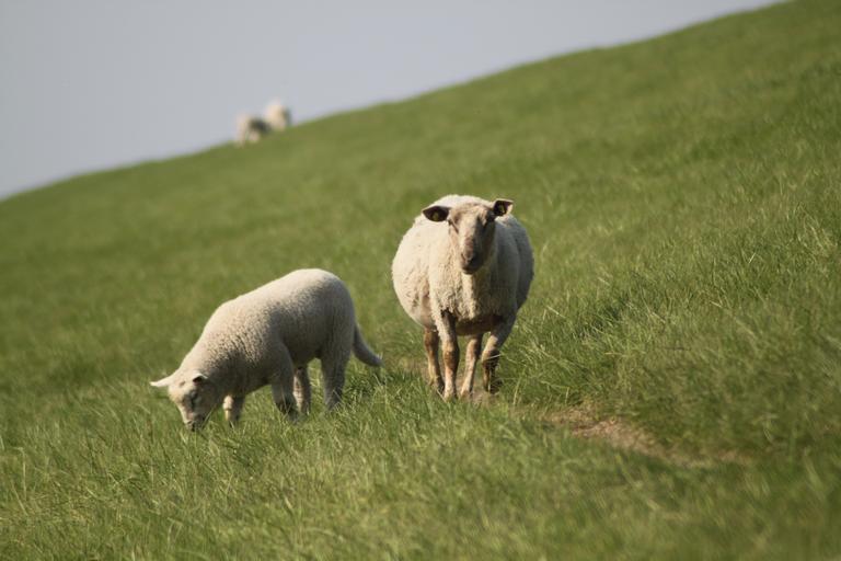 Keywords: sheep dyke lamb animal dike nordfriesland meadow lamb