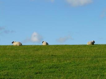 Keywords: sheep group rest concerns graze wool rhön sheep dike meadow grass north sea landscape idyll relaxation fresh chill out