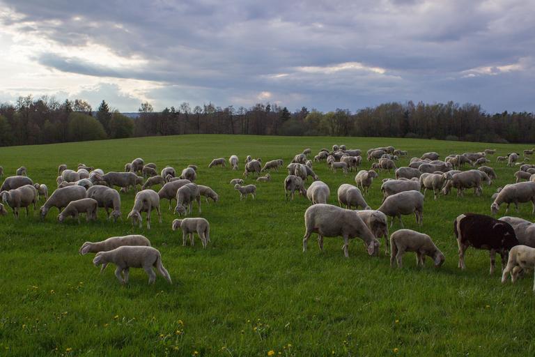 Keywords: sheep pasture flock flock of sheep livestock meadow eat graze animals abendstimmung agriculture