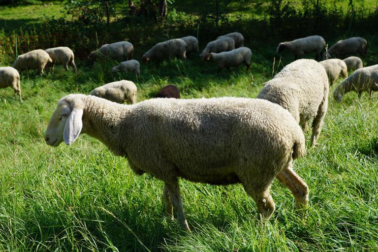 Keywords: sheep pasture meadow grey green grass animal meat butcher's eat field cuddly