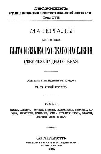 | Keywords: Shein Pavel Materialy dla izuchenia.jpg en title page of the book Шейн П В ате иалы для изучения быта и языка усского населения Севе о-Западного к ая Т II 1893 AD ru титульная ст аница книги Шейн П В ате иалы для изучения быта и языка усского населения Севе о-Западного к ая Т II 1893 год be тытульная ста онка кнігі Шейн П В ате иалы для изучения быта и языка усского населения Севе о-Западного к ая Т II 1893 год own Pracar 2013 free Павел Васілевіч Шэйн 1826-1900 Постаці бела ускай этнаг афіі Постаці бела ускай лінгвістыкі Павел Васильевич Шейн 1826-1900 Павел Васильевич Шеин бела уская мова бело усский язык belorussian language Belorussia Belarus Cc-zero Northwestern Krai Belarusians |