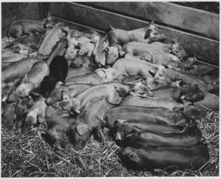 Keywords: Shelby County, Iowa.... Detailed description, "You can't raise 5 cent hogs on 60 cent corn." This wa . . . - NARA - 522464.jpg You can't raise 5 cent hogs on 60 cent corn This was a common complaint in Shelby County last year At present most farmers prefer feeders to hogs which are found in larger numbers on the low-income farms than on those of the wealthier farmers Sows averaged 6 per farm and other hogs 20 in 1940 Pigs are farrowed principally in the spring General notes 522464 Local identifier 83-G-44295 Department of Agriculture Bureau of Agricultural Economics Division of Economic Information ca 1922 - ca 1953 Rusinow Irving Photographer 5307166 <br /> Still Picture Records Section Special Media Archives Services Division NWCS-S National Archives at College Park 8601 Adelphi Road College Park MD 20740-6001 1941 05 02 - _ You_can't_raise_5_cent_hogs_on_60_cent_corn _This_wa_ _ _ _-_NARA_-_522464 jpg jpg </gallery> NARA-cooperation PD-USGov Pigs in the United States Irving Rusinow Shelby County Iowa |
