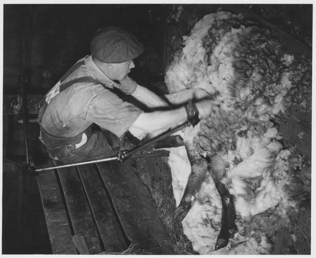 Keywords: Shelby County, Iowa.... Detailed description, Several farmers in Irwin have a few head of sheep - 2 . . . - NARA - 522466.jpg Several farmers in Irwin have a few head of sheep -- 20 or 30 usually With wool prices rising some of them wish they had more The man doing the shearing goes from farm to farm with his own apparatus An expert at this work he shears quickly and wastes none of the wool General notes 522466 Local identifier 83-G-44297 Department of Agriculture Bureau of Agricultural Economics Division of Economic Information ca 1922 - ca 1953 Rusinow Irving Photographer 5307166 <br /> Still Picture Records Section Special Media Archives Services Division NWCS-S National Archives at College Park 8601 Adelphi Road College Park MD 20740-6001 1941 05 02 - _Several_farmers_in_Irwin_have_a_few_head_of_sheep_-_2_ _ _ _-_NARA_-_522466 jpg jpg </gallery> NARA-cooperation PD-USGov Sheep shearing People with sheep Irving Rusinow Shelby County Iowa |
