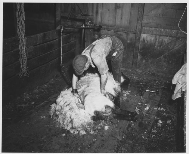 Keywords: Shelby County, Iowa.... Detailed description, Several farmers in Irwin have a few head of sheep - 2 . . . - NARA - 522468.jpg Several farmers in Irwin have a few head of sheep -- 20 or 30 usually With wool prices rising some of them wish they had more The man doing the shearing goes from farm to farm with his own apparatus An expert at this work he shears quickly and wastes none of the wool General notes 522468 Local identifier 83-G-44299 Department of Agriculture Bureau of Agricultural Economics Division of Economic Information ca 1922 - ca 1953 Rusinow Irving Photographer 5307166 <br /> Still Picture Records Section Special Media Archives Services Division NWCS-S National Archives at College Park 8601 Adelphi Road College Park MD 20740-6001 1941 05 02 - _Several_farmers_in_Irwin_have_a_few_head_of_sheep_-_2_ _ _ _-_NARA_-_522468 jpg jpg </gallery> NARA-cooperation PD-USGov Sheep shearing People with sheep Irving Rusinow Shelby County Iowa |