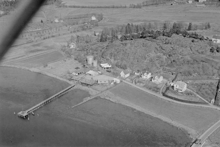 Keywords: flyfotografering widerøe nøtterøy vestfold norway skråfoto drivstoffdepot boliger hus fjellanger widerøe fjellangerwiderøe flyfoto vestfoldmuseene blackandwhite monochrome black and white WF.S.50714 WF.S.50714