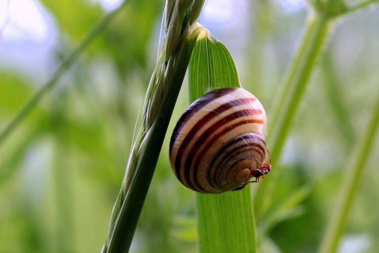 Keywords: shell snail tape worm cepaea hortensis ant on snail mollusk leaf branch nature