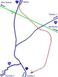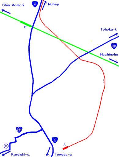 Keywords: Shichinohe staion old and new.png en Shichinohe station old and new in Aomori prefecture Red Nambujuukan Railway Green Tohoku Shinkansen Blue National Highway A B Shichinohe stn C Shichinohe Town office before merging ja 新旧の七戸駅 赤 南部縦貫鉄道 緑 北新幹線 国道 A 南部縦貫鉄道七戸駅 B 北新幹線七戸駅 C 合併前の七戸町庁舎 合併後の七戸出張 投稿 成 user Penpen 2008-07-15 Nanbu Jukan Railway Shichinohe Aomori |