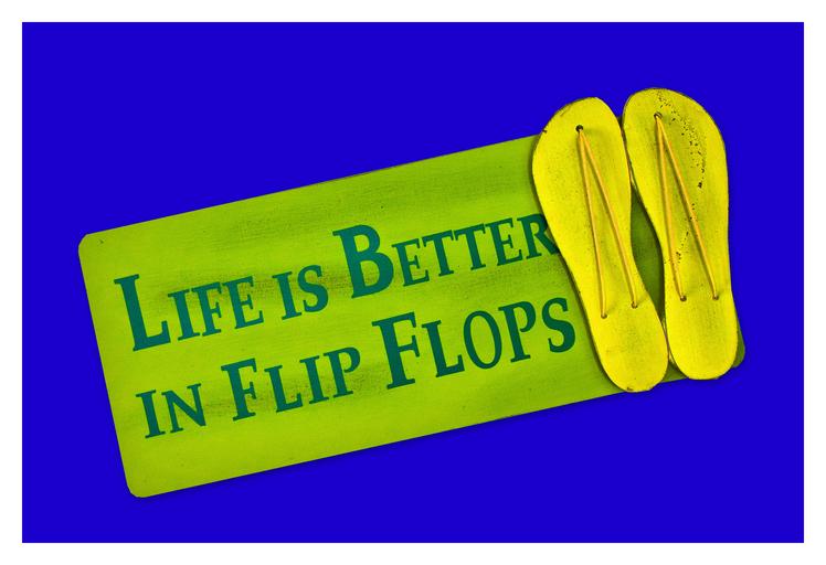 Keywords: shield postcard live better flip flops shoes funny greeting card pleasure happiness friendly saying proverbs way of life summer