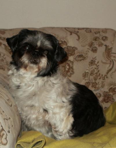 Keywords: Shih-tzu.JPG en black and white stripy Shih-tzu own Nemusel som 2011-03-25 Shih Tzu