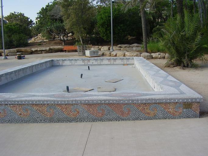 Keywords: Shimon Tzabar Mosaic Pool in Tel Aviv.jpg en pool with mosaic by shimon tzabar in independence park tel aviv בריכה ע פסיפס ש שמעון צבר בגן העצמאות בת אביב Own avishai teicher User Avi1111 2009-08-15 public domaine Mosaics in Israel Gan Ha'atzmaut |