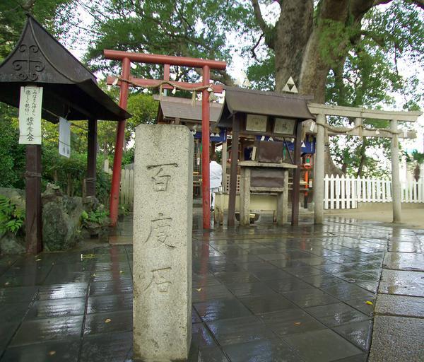 | Keywords: ShintoShrineHyakudoIshiM0872.jpg This photograph shows a Shinto shrine Jinja The upright stone in the foreground is a hyakudo-ishi one-hundred-times stone A worshipper with a special prayer will visit the shrine a hundred times praying on each visit After praying the worshipper must go away from the shrine at least around this hyakudo-ishi for the next visit to count as a separate visit The shrine is within the grounds of Wakayama Castle I took the photo and contribute my rights in the file to the public domain; individuals and organizations retain rights to images in it Wakayama Castle Hyakudoishi 2005-12-04 own assumed Fg2 |