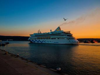 Keywords: ship cruise ship travel sea cruise sky tourism vessel voyage transportation sunset seagull pier vacation