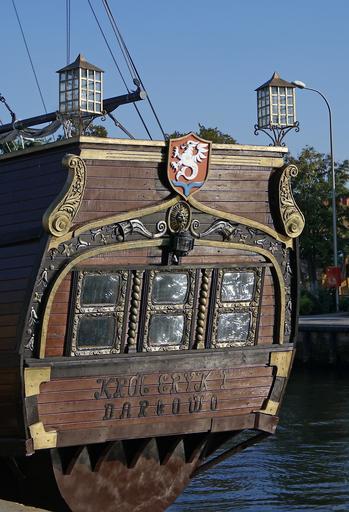 Keywords: ship poop retro cruise ship retro ship decorating the stern haven sailing port and starboard side of the ship stern window coat of arms the name of the vessel darłowo seaside stern lighting