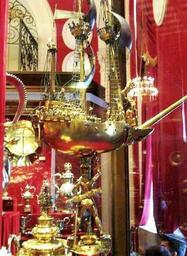 | Keywords: Ship-shaped vessel 1.jpg Artwork en Ship-shaped vessel pl Naczynie w kształcie statku Silver gilt cm 124 5 Moscow Kremlin Armoury en The vessel is supported by the statue of the Colossus of Rhodes and adorned with other figures baby Bacchus on the ship bow men and women animals cannons The main sail bears the emblem of the Polish-Lithuanian Commonwealth with the crest of the Vasa Dynasty in the center Object history s 1580 commission Sigismund III of Poland Warsaw own BurgererSF s 1580 Georgius Sporboth Sporboch Other versions West-european tableware in the Museums of Moscow Kremlin Silverware in Russia Goldsmithery from the Polish Vasa Collection Ships in sculpture Silver sculptures |