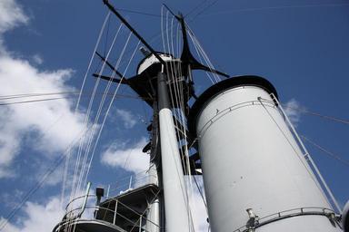 Keywords: ship smokestack wires heaven blue antenna