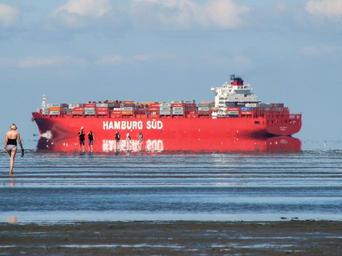 Keywords: ship wadden sea mirage north sea watts sea beach flicker heat flicker summer
