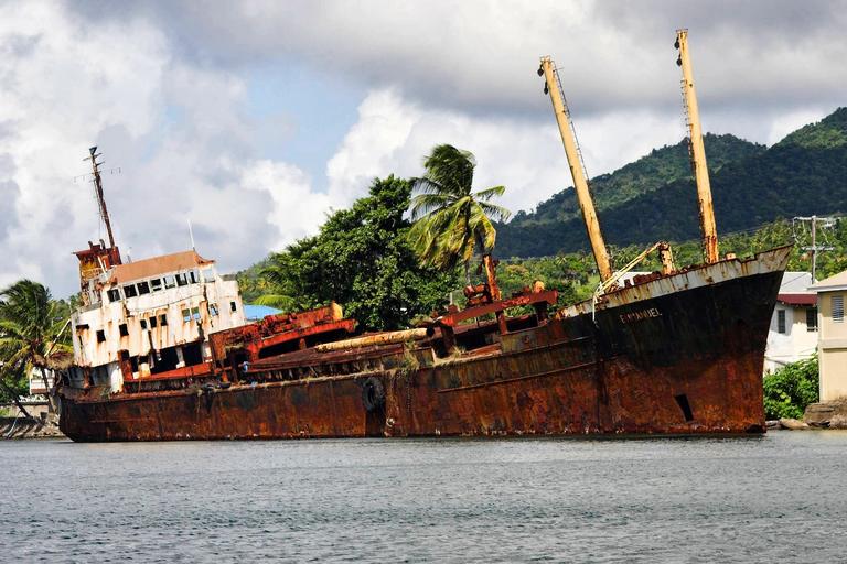 Keywords: ship wreck wrecked shipwreck broken abandoned vessel rusty corrosion damaged accident shore hills portsmouth dominica