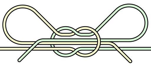 Keywords: Shoelace knot.svg Schematized diagram of simplest shoe-tying knot slipped square-knot or bow Made from circular arcs horizontal lines and lines at 45-degree angles with a requirement that structural knot crossings be shown as close to perpendicular as possible see also Image Knots-decorative-inline svg Own - Converted from the following vector PostScript code <pre> 341 396 translate 35 dup scale 22 setlinewidth 1 setgray /z 20000 sqrt def/y gsave 40 setlinewidth 0 setgray stroke grestore stroke def 1 setlinecap 1 1 8 setrgbcolor z 6 5 mul neg z 1 25 mul neg 100 add moveto z 1 25 mul neg z 1 25 mul neg 100 90 45 arcn 0 0 150 225 135 arc z 1 25 mul neg z 1 25 mul 100 315 270 arcn z 1 75 mul neg z 1 25 mul 100 270 225 arcn z 4 8 neg mul 1 2129 sub z 1 3 mul 1 2129 add 200 45 270 arc 249 96 -114 9392 100 90 45 arcn 170 -170 rlineto y 85 1 85 setrgbcolor z 5 mul z 1 25 mul neg 100 add moveto 25 z mul neg z 1 25 mul neg 100 90 135 arc z 1 5 mul neg 0 150 315 45 arcn 25 z mul neg z 1 25 mul 100 225 270 arc 25 z mul z 1 25 mul 100 270 315 arc 3 35 z mul 1 add z 1 45 mul 1 add 190 135 270 arcn -455 239 -83 9392 100 90 135 arc -190 -190 rlineto y 0 setlinecap gsave 40 setlinewidth 0 setgray -400 16 0608 moveto 80 0 rlineto stroke -400 -14 9392 moveto 80 0 rlineto stroke 0 0 150 301 59 arc stroke z 3 mul neg z 1 25 mul neg 100 add moveto 150 0 rlineto stroke z 1 75 mul neg z 1 25 mul 100 269 225 arcn -50 50 rlineto stroke 321 67 -45 2285 moveto 68 -68 rlineto stroke grestore -401 16 0608 moveto 82 0 rlineto stroke 1 1 8 setrgbcolor -401 -14 9392 moveto 82 0 rlineto stroke 0 0 150 300 60 arc stroke z 3 mul neg 1 sub z 1 25 mul neg 100 add moveto 152 0 rlineto stroke z 1 75 mul neg z 1 25 mul 100 270 225 arcn -51 51 rlineto stroke 320 67 -44 2285 moveto 70 -70 rlineto stroke showpage EOF</pre> 2007 AnonMoos Square knots Knots in art and decoration Shoelaces Images with PostScript source code |