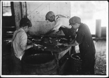 Keywords: nara:arcid=523454 u.s. national archives usnationalarchives lewis hine lewishine blackandwhite monochrome photo border people black and white Original Caption: Show the way they cut fish in sardine canneries. Large, sharp knives are used with a cutting and sometimes chopping motion. The slippery floors and benches, and careless bumping into each other increase the liability to accident. The salt water gits into the cuts and they ache. Eastport, Me, August 1911 U.S. National Archives’ Local Identifier: 102-LH-2435 Photographer: Hine, Lewis Subjects: Child Labor National Child Labor Committee Working Conditions Factory Persistent URL: research.archives.gov/description/523454 Repository: Still Picture Records Section, Special Media Archives Services Division (NWCS-S), National Archives at College Park, 8601 Adelphi Road, College Park, MD, 20740-6001. For information about ordering reproductions of photographs held by the Still Picture Unit, visit: www.archives.gov/research/order/still-pictures.html Reproductions may be ordered via an independent vendor. NARA maintains a list of vendors at www.archives.gov/research/order/vendors-photos-maps-dc.html Access Restrictions: Unrestricted Use Restrictions: Unrestricted Original Caption: Show the way they cut fish in sardine canneries. Large, sharp knives are used with a cutting and sometimes chopping motion. The slippery floors and benches, and careless bumping into each other increase the liability to accident. The salt water gits into the cuts and they ache. Eastport, Me, August 1911 U.S. National Archives’ Local Identifier: 102-LH-2435 Photographer: Hine, Lewis Subjects: Child Labor National Child Labor Committee Working Conditions Factory Persistent URL: research.archives.gov/description/523454 Repository: Still Picture Records Section, Special Media Archives Services Division (NWCS-S), National Archives at College Park, 8601 Adelphi Road, College Park, MD, 20740-6001. For information about ordering reproductions of photographs held by the Still Picture Unit, visit: www.archives.gov/research/order/still-pictures.html Reproductions may be ordered via an independent vendor. NARA maintains a list of vendors at www.archives.gov/research/order/vendors-photos-maps-dc.html Access Restrictions: Unrestricted Use Restrictions: Unrestricted |